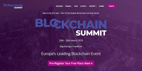 Blockchain Summit Frankfurt 2019 Event Description The Blockchain Summit Frankfurt is a leading one day conference and exhibition dedicated to the impact of Blockchain on industry taking place on the 26th March 2019 at Kap Europa, Frankfurt. Details Event Date and Time: 26th March 2019 00:00-23:59 Location Frankfurt,Germany View The Map Find Out More More Info