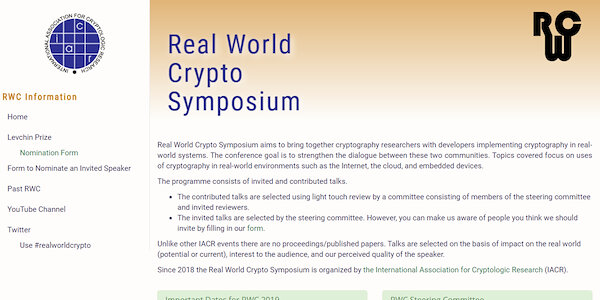 Real World Crypto Symposium Event Description Details Event Date and Time: 9th January 00:00 - 11th January 2019 23:59 Location San Jose,CA,United States View The Map Find Out More More Info