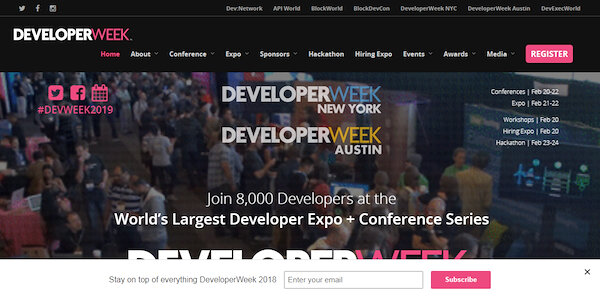 DeveloperWeek Event Description Details Event Date and Time: 20th February 00:00 - 24th February 2019 23:59 Location San Francisco,CA,United States View The Map Find Out More More Info
