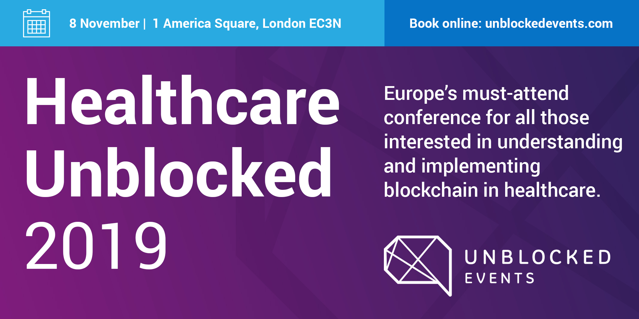Healthcare Unblocked 2019 Event Description Europe's must-attend conference for those looking to understand and implement blockchain projects in healthcare. Details Event Date and Time: 8th November 2019 09:00-17:30 Location 1 America Square, 17 Crosswall,London,EC3N 2LB,United Kingdom View The Map Find Out More More Info