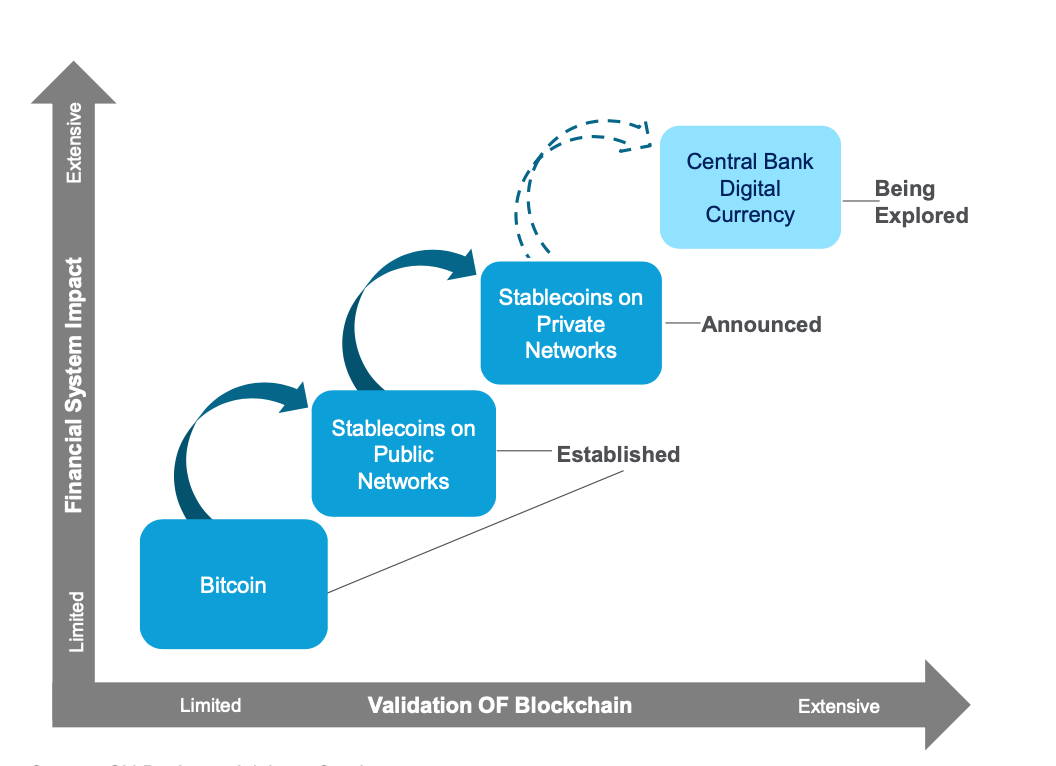 Goldman Sachs survey of its clients 40%+ are already exposed to crypto currencies in various ways, 61% intending to increase their exposure to cryptos in one way or another. As reported by Reuters, Citibank believes: “Bitcoin is at a tipping point and could become the preferred currency for international trade.” Citi notes how Bitcoin has paved the way for stablecoins ($55 billion asset class) and it can see the potential for the rise of stablecoins on permissioned Blockchains, similar to what Facebook...