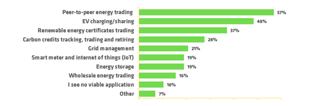 In France, Grenoble Ecole de Management conducted a survey to ask 112 experts from industry, science, and public administration in France about the role of Blockchain technology in the French energy sector. It wanted to understand how these experts thought Blockchain would be used in the next five years. Peer-to-peer energy trading and electric vehicle charging and sharing were the most popular choices.